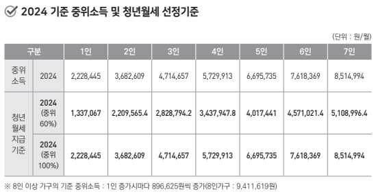 □ 재산 및 소득요건 : 청년 본인가구와 부모 등을 포함하는 원가구의 소득 및 재산을 고려하며, 세부 기준은 아래와 같음